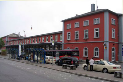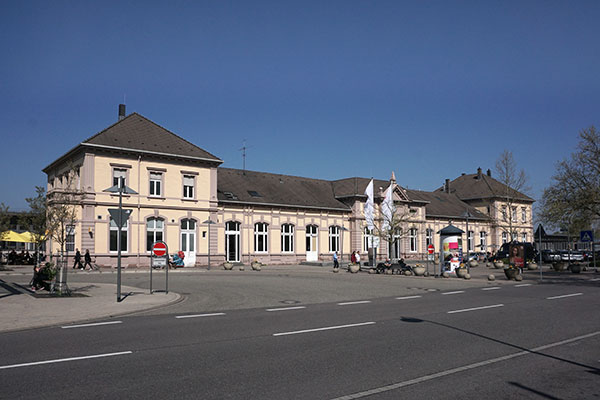 Der Bahnhof liegt am Westrand der Innenstadt an der Bismarckallee. |